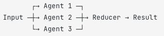 In the example above from Shayan Taslim you have a horizontal flow of information. Agent 1 (chat 1) for example writes you ideas for an article, agent 2 (chat 2) builds them into content and agent 3 (chat 3) generates images for you. The chat 4 (in this case the reducer) takes all of it and makes it into a cohesive post.